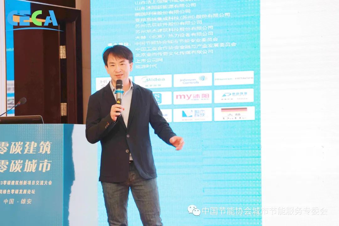 山東沐陽新能源有限公司總經理田錄龍作題為《零碳建筑新能源技術應用中的沐陽解決方案》的技術交流分享