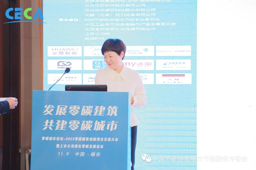 河北省建筑科學研究院智能與綠色建筑研究所所長郝翠彩作題為《建筑降碳價值實現與零碳園區關鍵技術探索》演講