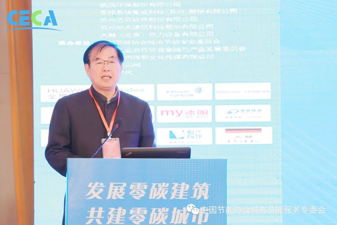 全國工程勘察設計大師、中國建筑科學研究院建筑環境與能源研究院院長徐偉作題為《發展零碳建筑,邁向零碳城市》的主旨演講