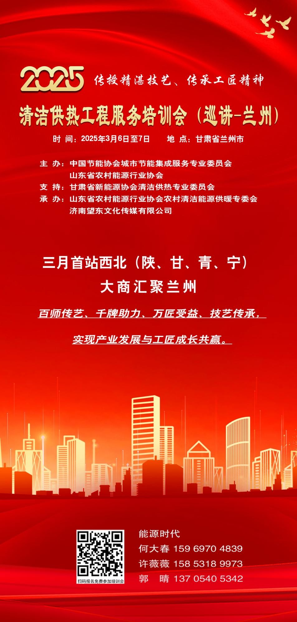 2025年3月6日-7日,在甘肅省蘭州市我們將共同見證清潔供熱行業這場賦能行業發展的盛會。培訓會免參會費(須提前報名),報名通道多樣便捷,通過二維碼、微信、郵箱和電話等即可報名。請有志于清潔供暖事業的各方人士,切莫錯失良機,快來共赴這場知識與機遇的盛宴,攜手書寫北方清潔取暖的壯麗新篇章!