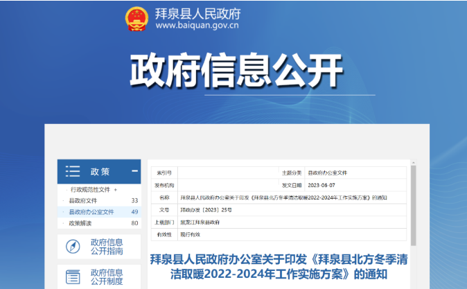 拜泉縣北方冬季清潔取暖2022-2024年工作實施方案