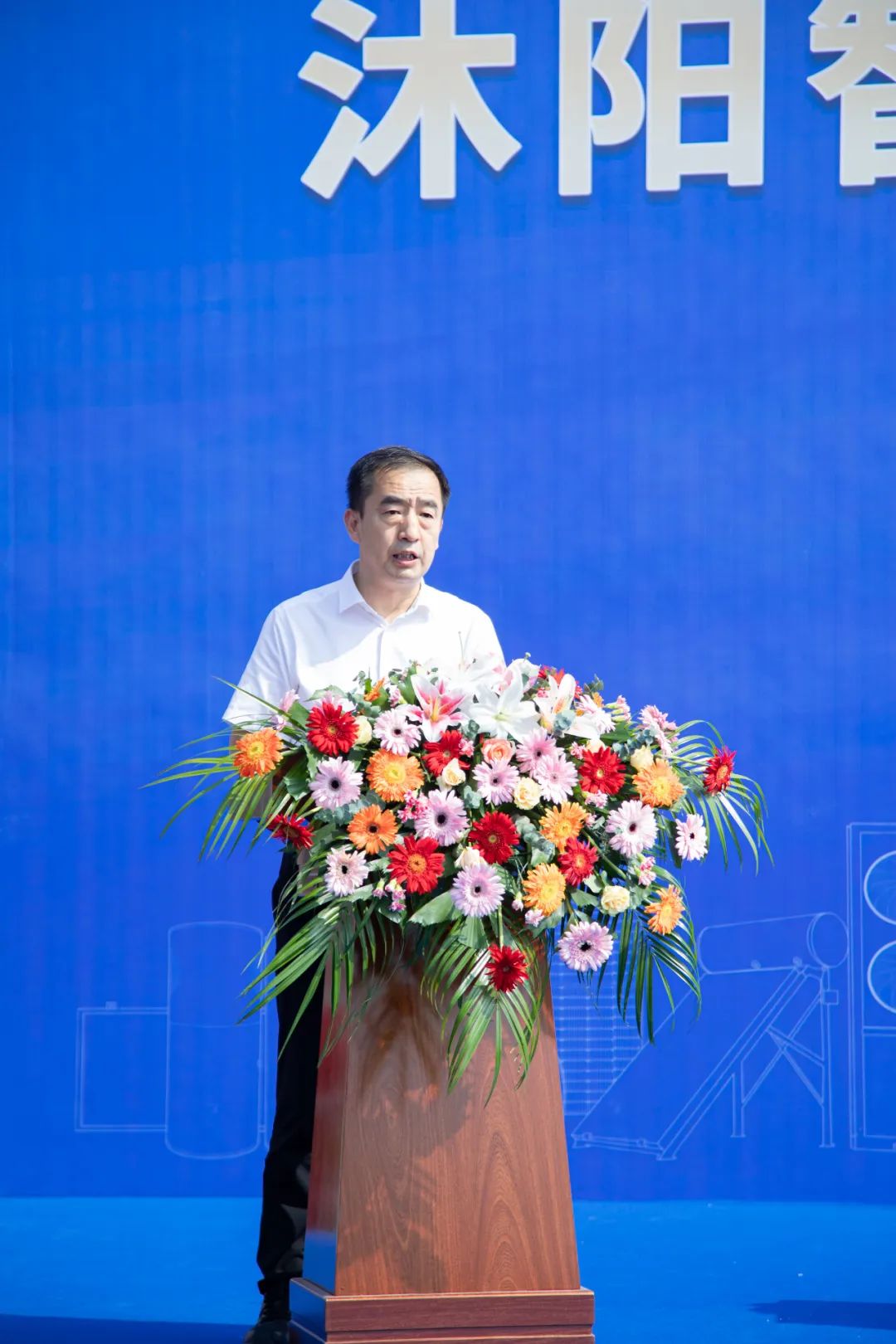 沐陽新能源董事長田茂余表示,今天我們相聚在千年古都、大美莒縣,沐陽盛大召開“沐陽智能空氣能熱泵生產線投產&國家級空氣能實驗室揭幕儀式”及“沐陽新園區奠基儀式”。我們光能行業精英齊聚一堂、共謀發展,這是我們沐陽人無尚的榮光,也是我們光能行業發展大時代的成功。您的蒞臨見證沐陽的成長歷程,沐陽人深感自豪!他指出,太陽能行業大發展的30年,節能低碳,綠色環保,風光無限;從原始真空玻璃管時代,到平板太陽能、再到今天的智能空氣能大變革時代,沐陽公司近二十余年發展,勵精圖治、博采眾長、團結向上、勇于亮劍,產品質量超出國家標準檢測,產銷量遙遙領先。今年沐陽公司持續投入,擴大產能,繼續優化產業鏈,產業升級,提升品質與產量,鞏固沐陽行業影響力,打造最完整、數字智慧產業鏈園區!